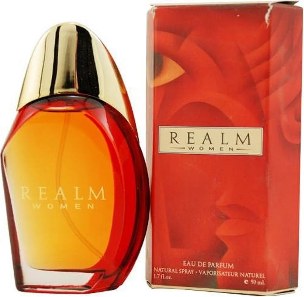 Realm for Women is characterized as an oriental-fruity fragrance. Its composition includes top notes of cassia and Sicilian mandarin orange, heart notes of peony and water lily, and base notes of honey and vanilla. The scent is described as a warm blend of sweet honey and mature vanilla, with subtle hints of spice and citrus. Users have noted its comforting and uplifting aroma, suitable for various occasions.